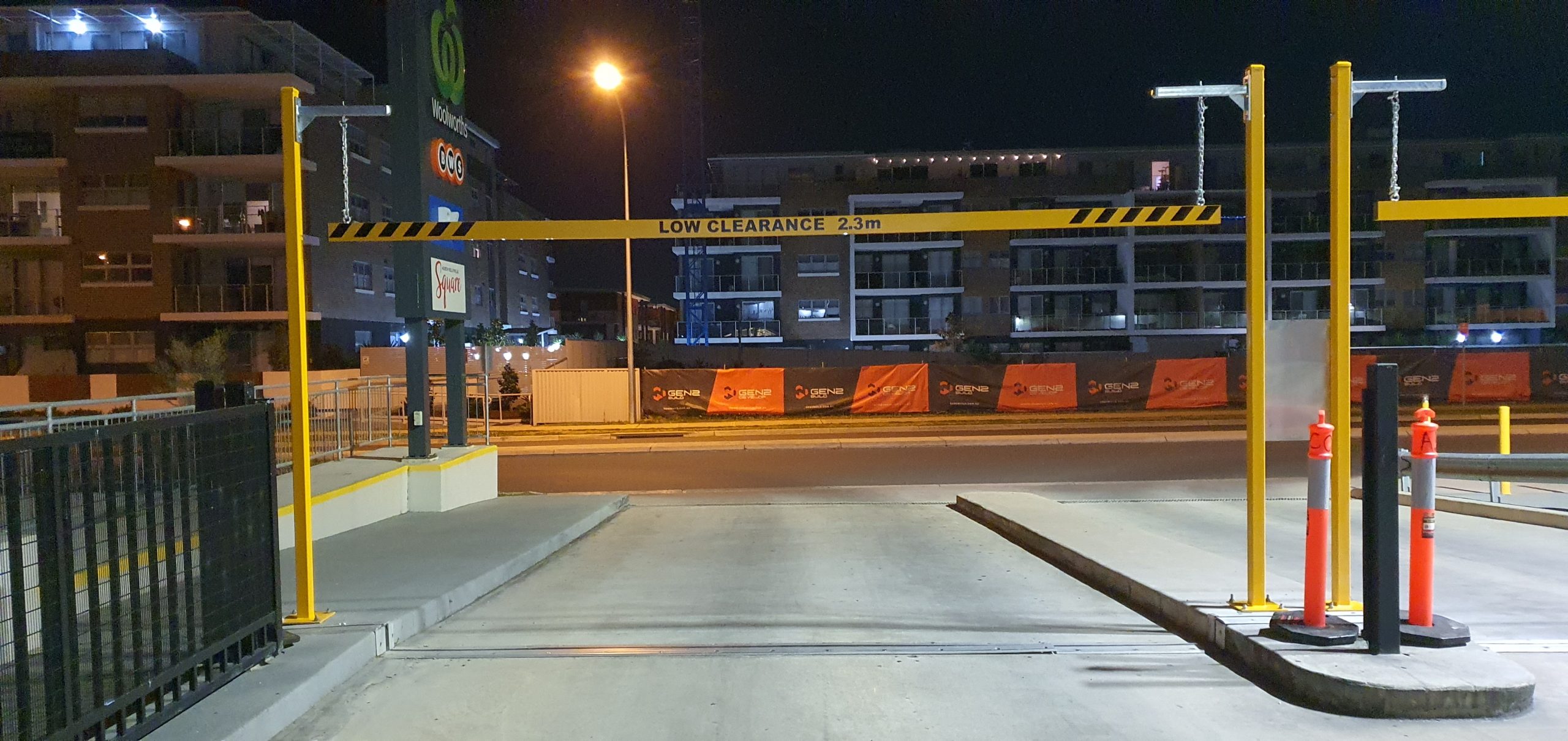 Aluminium Height Bar eliminates damage to vehicles and property caused by over height vehicles. The new aluminium design of the height bar has 50% larger face for improved visibility. The height bar hanger assemblies now are fully adjustable at the standoff bracket and the height bar for simplified installation. The height bar range is available in five standard lengths or custom made to any length. All height bars are supplied with new adjustable hanger assemblies and chain. All height bars are powder coated Yellow with reflective face and display “LOW CLEARANCE” text and the required clearance (please specify when ordering). Options include adjustable offset brackets and freestanding surface mount or below ground posts for where there are no existing supporting structures. Australian Parking Barriers provide installation services in Sydney, Wollongong, Newcastle, Canberra, Sutherland, Campbelltown, Nowra and Ulladulla.